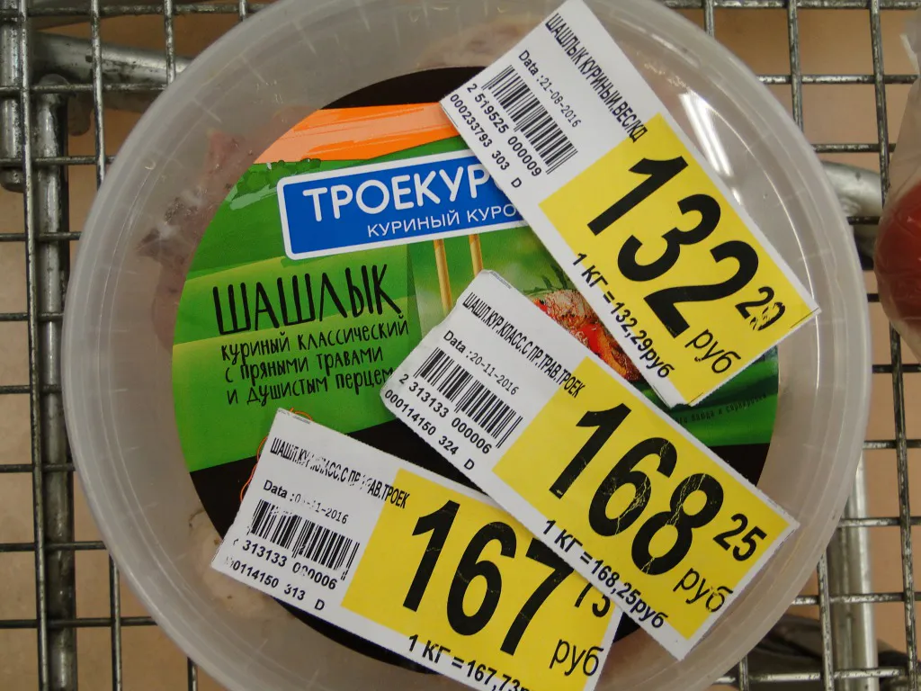 В мясном отделе цена на "Куриный шашлык" была, что называется, на выбор покупателя – ценника сразу три. Интересно, какую цену назовут на кассе?