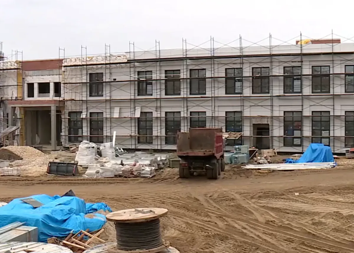 Специалисты подрядной организации стараются догнать сроки, однако точную дату завершения работ объявят позже. В данный момент построены 7 основных корпусов и 8 вспомогательных.