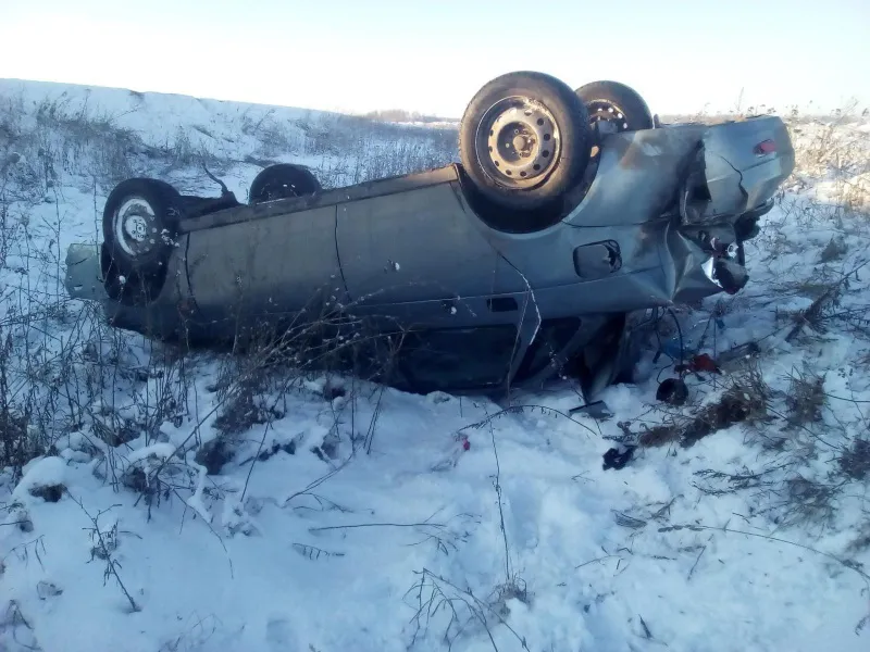 В Рязанской области "Лада Приора" улетела в кювет и перевернулась