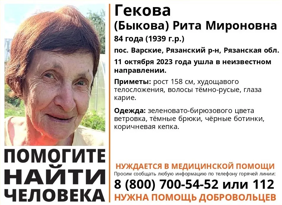 В Рязанской области волонтеры разыскивают 84-летнюю женщину