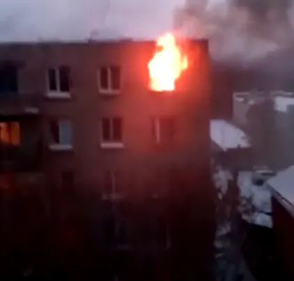 На записи видно, как огонь вырывается из окон квартиры. Съемка ведется из квартиры дома, расположенного напротив. Пока сведений о числе жертв не поступало.