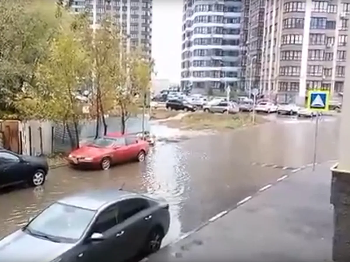 «И так каждый дождик около новой школы 76. Это ещё ливней не было. Из дома выйти невозможно. К школе только вплавь добираться. Пешеходный переход затопило. Можно уже что-то с этим сделать?», – задалась вопросом горожанка.