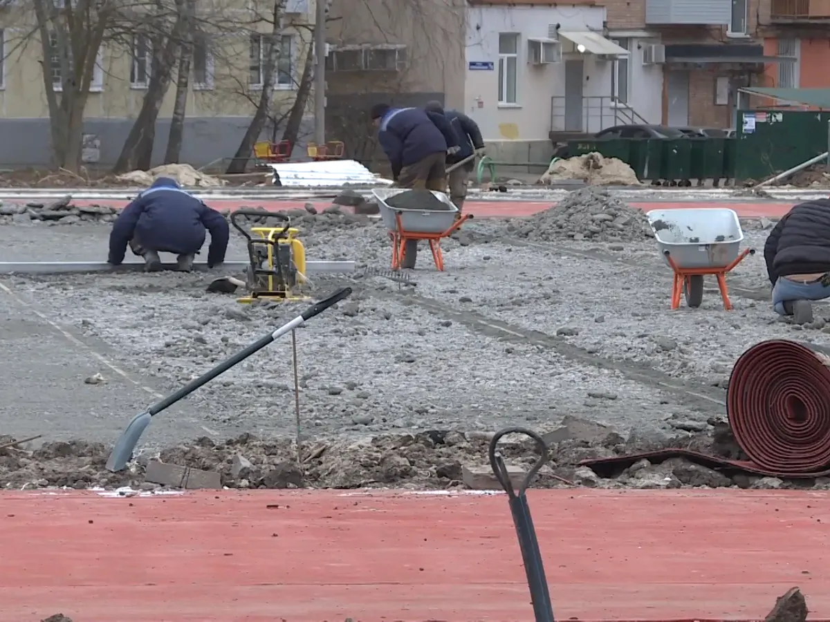Был демонтирован забор и появилось резиновое покрытие, но забор, освещение и разметка беговых дорожек до сих пор отсутствуют. Погодные условия не позволяют проводить работы надлежащим образом. Поставлен вопрос о замене подрядной организации.