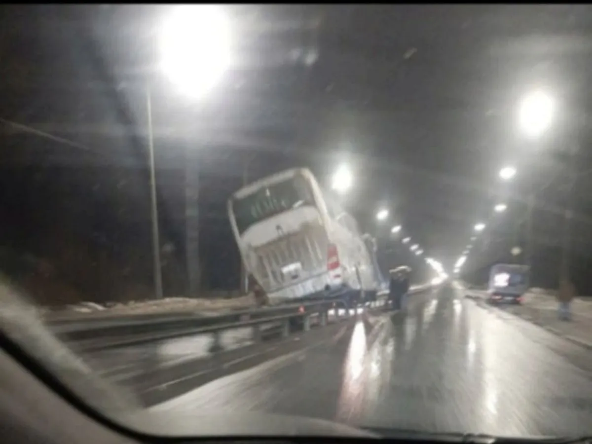 На Южной окружной дороге в Рязани автобус повис на отбойнике