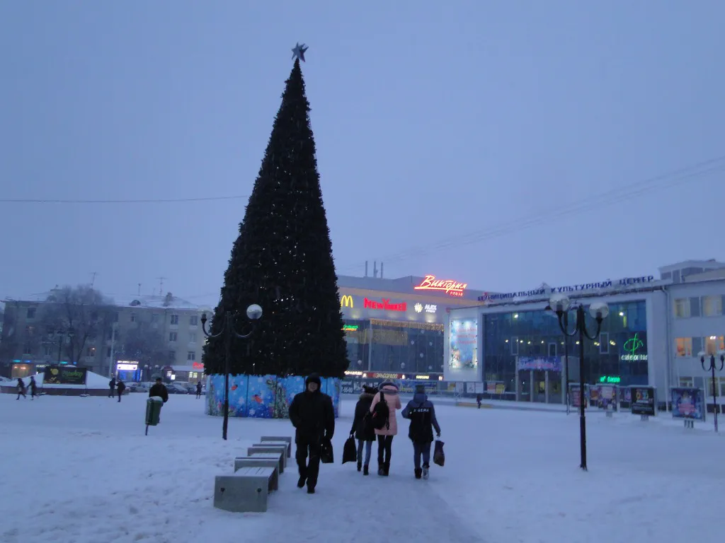 Главная Елка на площади Победы уже  установлена. Правда, пока она остается без новогоднего наряда.