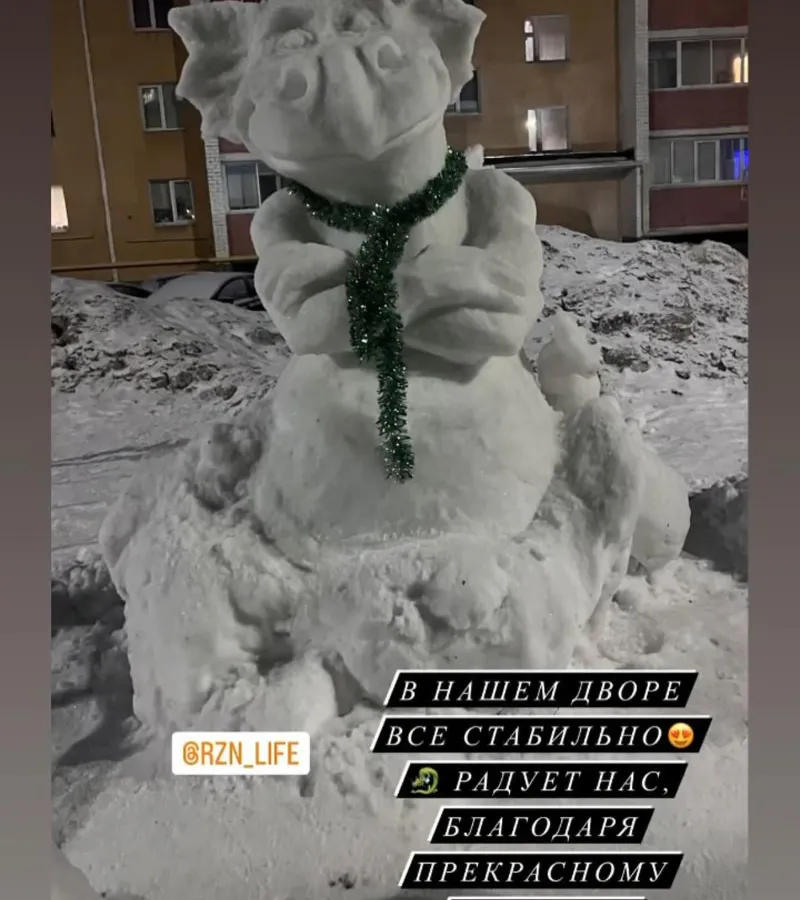 Рязанцы в восторге от снежного символа года, появившегося в одном из дворов
