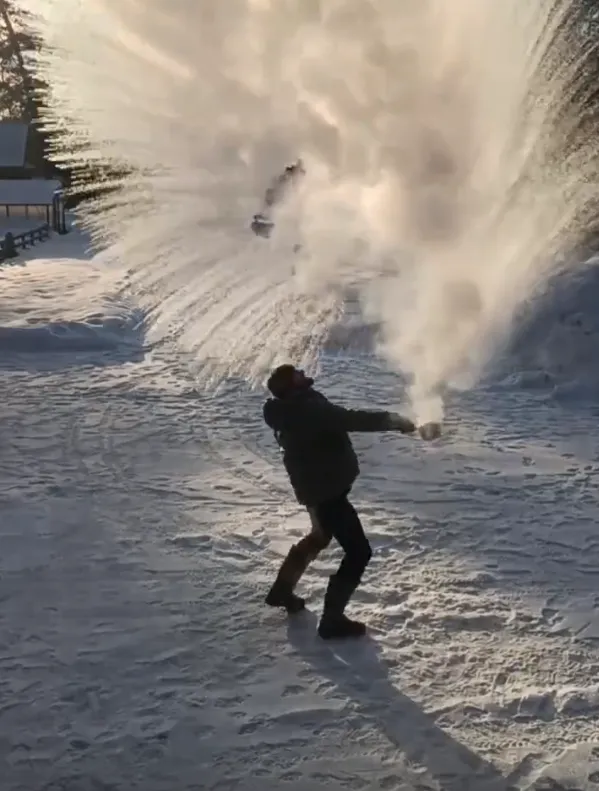 «Сегодня у нас -30. Пришло время провести опыт с кипятком. И да! Это работает!», – написал автор публикации в сообществе «Новости Рязани ВКонтакте».