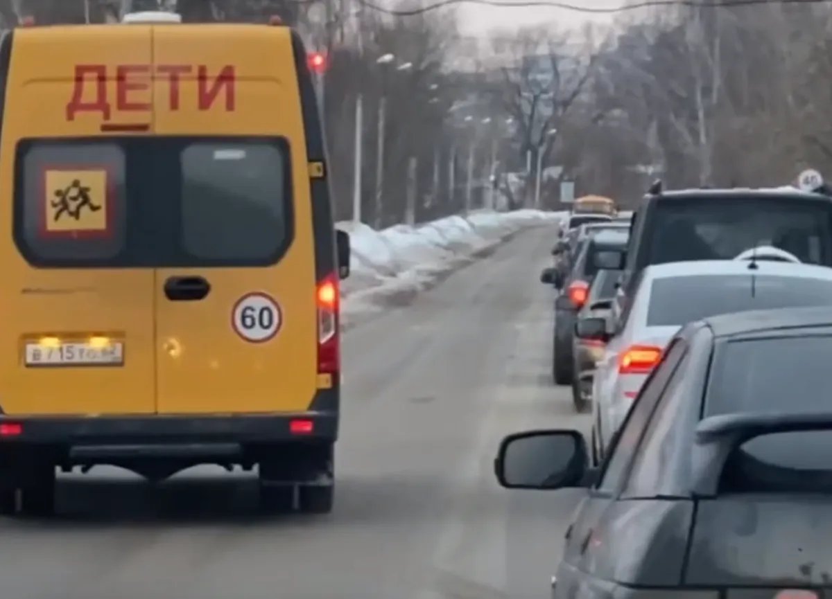 Под Рязанью заметили школьный автобус, объезжающий пробку по встречной полосе