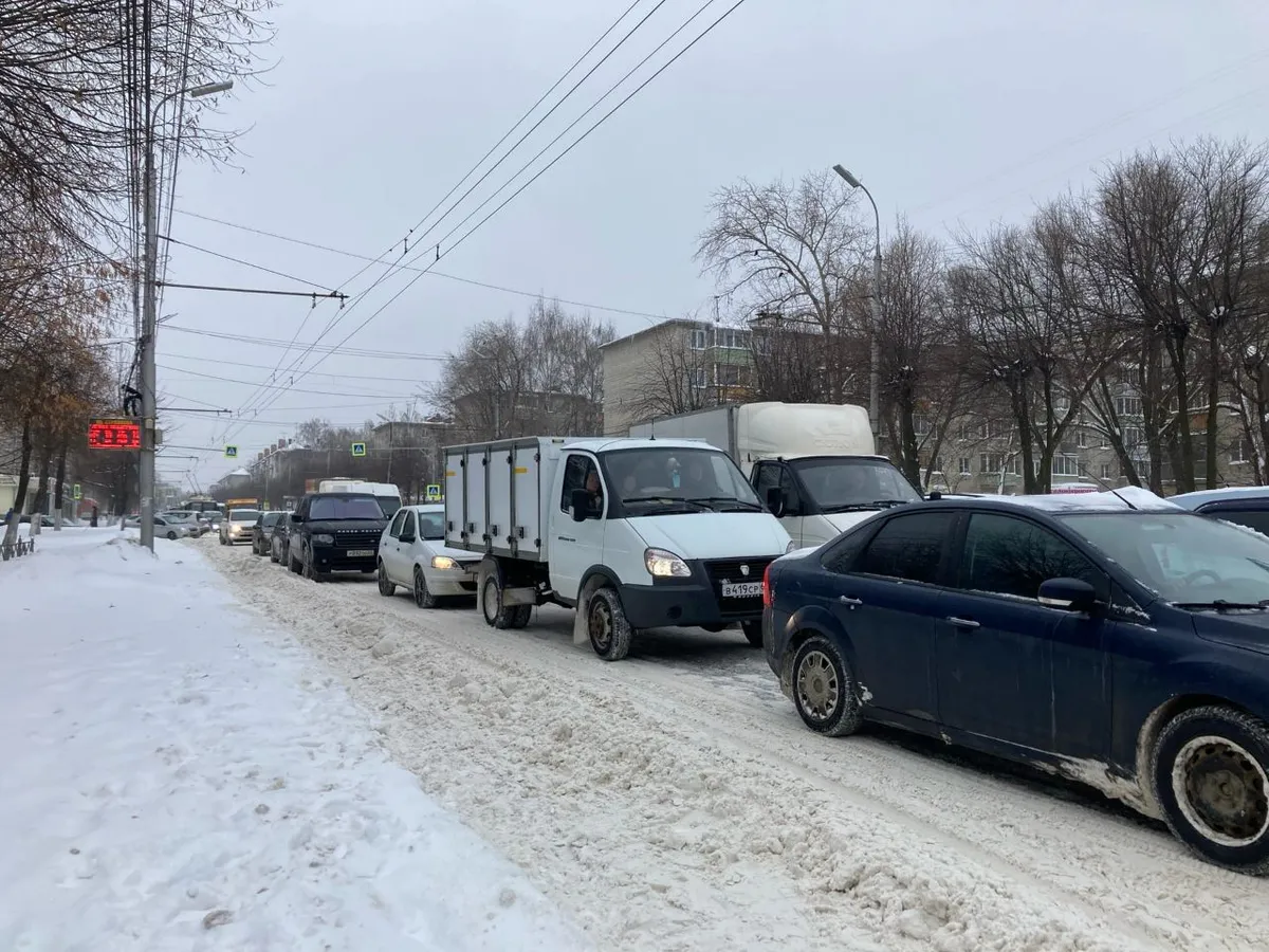 На трассе Ухолово – Ряжск возникли пробки из-за заснеженной дороги