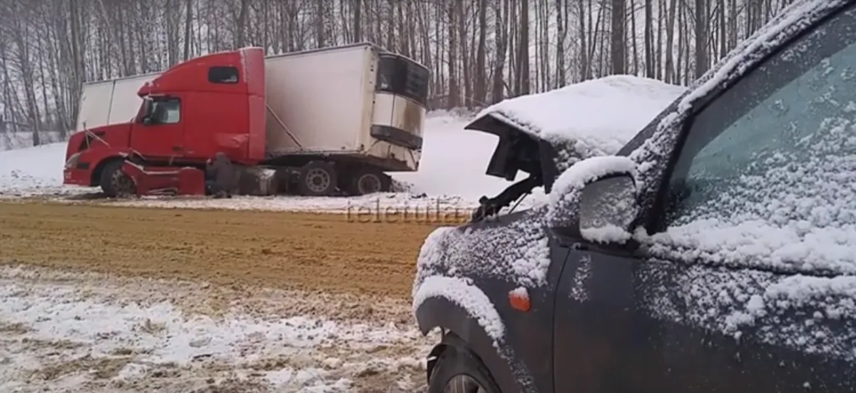 Утреннее ДТП под Тулой: фура столкнулась с легковушкой