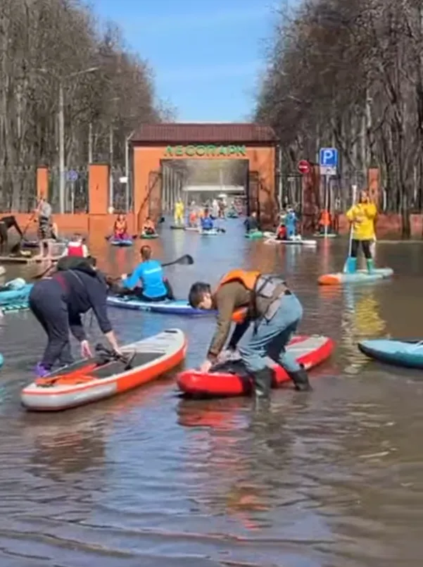 На территории Лесопарка в Рязани пока он подтоплен в связи с паводком и разливом реки Оки, местные жители организовали массовый заплыв на сапбордах. Соответствующие кадры опубликовали в социальных сетях в сообществе «Рязанская область».