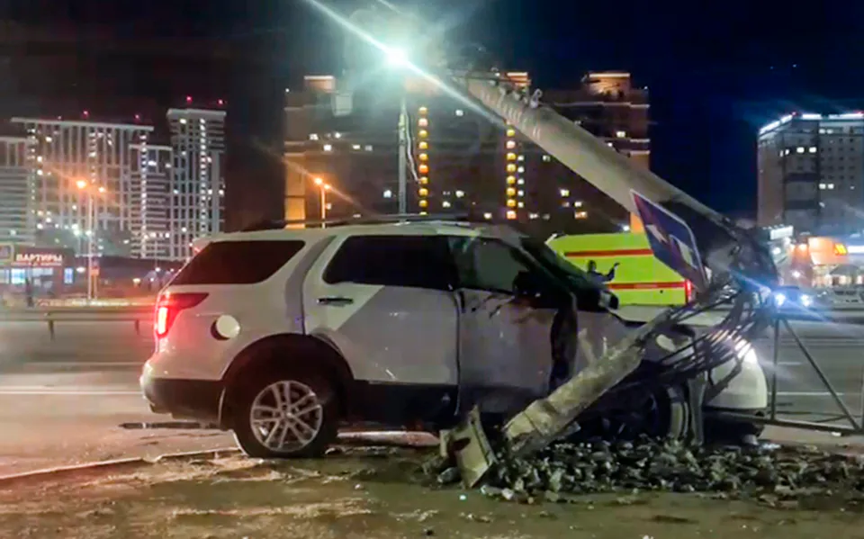 На Московском шоссе в Рязани внедорожник протаранил столб из-за ДТП