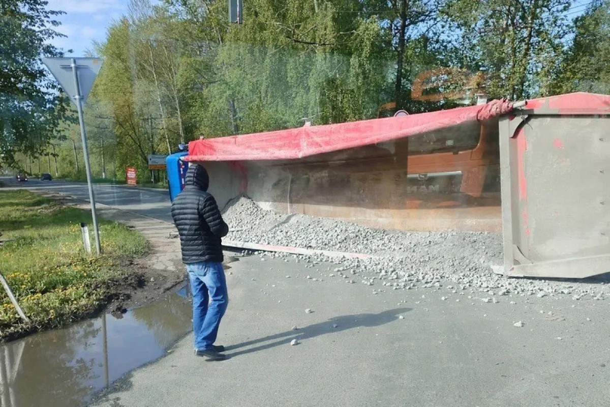 В результате аварии 10 мая в Дягилево опрокинулся грузовик, который перевозил щебень. Соответствующее фото с места аварии опубликовали жители в сообществе «Дягилево» в социальной сети «ВКонтакте».