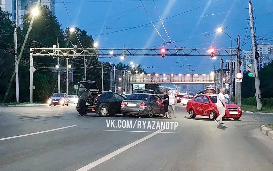 В субботу, 1 июня, на Московском шоссе в Рязани произошло дорожно-транспортное происшествие с участием трех легковых автомобилей. Видеоролик с места происшествия был размещен в группе "ДТП. Аварии. Рязань" во "ВКонтакте".