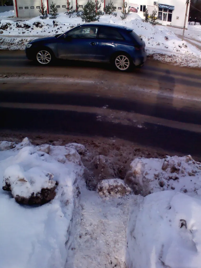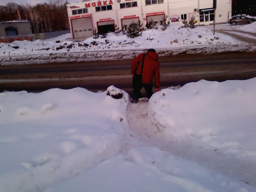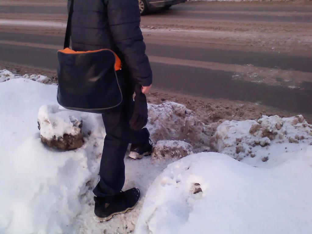 На улице Братиславской есть пешеходный переход к остановке "6 больница", спуститься с так называемого "тротуара", заваленного снегом и ледяными глыбами, связано с большим риском. Я не акробат, поэтому несколько раз приземлялся и на бок, и на "пятую точку", руками в грязь "перехода", который ни разу не чистился. Вероятность попасть под машину, свалившись с груды льда, очень высока, - рассказал мужчина.