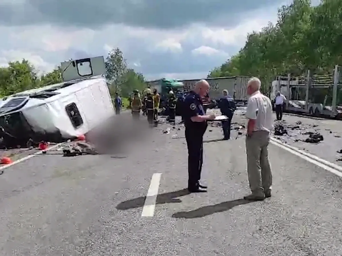 Напомним, предварительно, примерно в 6:30 18 июня на 273-м километре федеральной трассы М5 «Урал» вследствие нарушения правил ПДД водитель микроавтобуса выехал на встречную полосу и врезался в легковой автомобиль Land Rover. После этого машины столкнулись с двумя грузовиками.