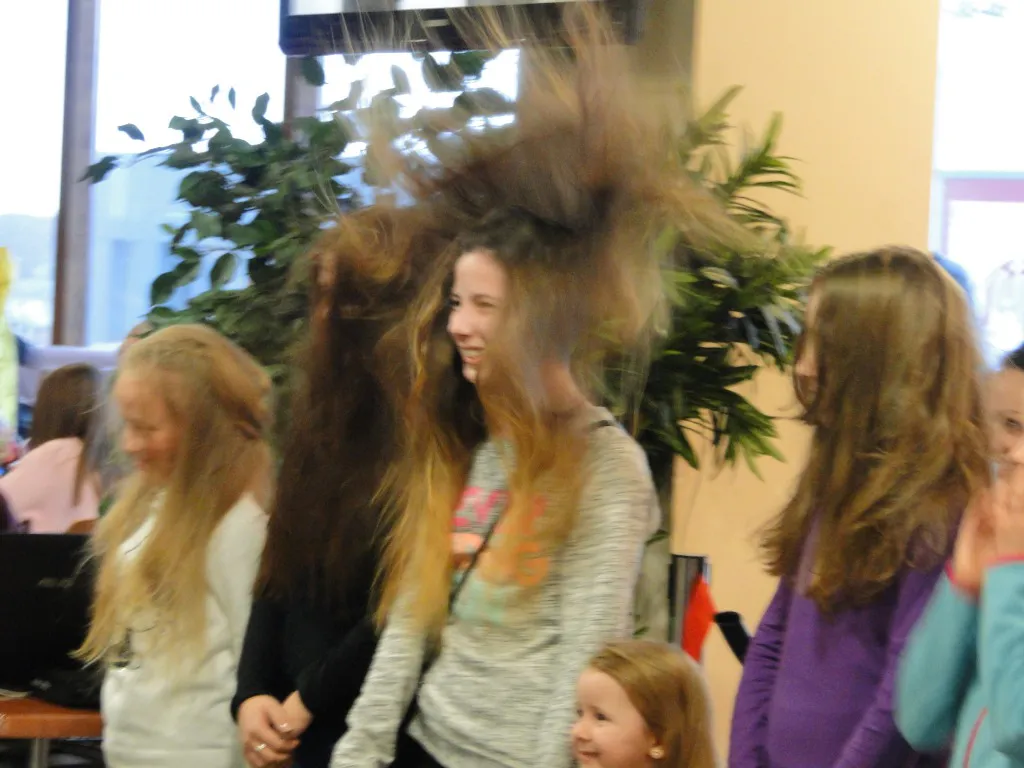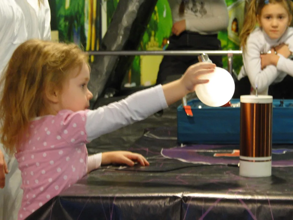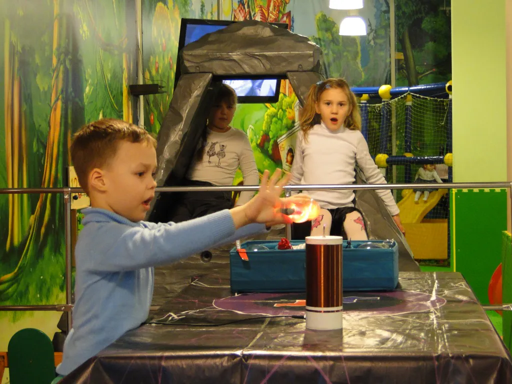 В доступной игровой форме ребятам продемонстрировали и объяснили многие открытия: что такое ток и как образуются молнии, почему при расчесывании волосы становятся дыбом, как поймать плазменные лучи. Малыши почувствовали себя волшебниками, в руках которых начали светиться обыкновенные и необыкновенные лампы.