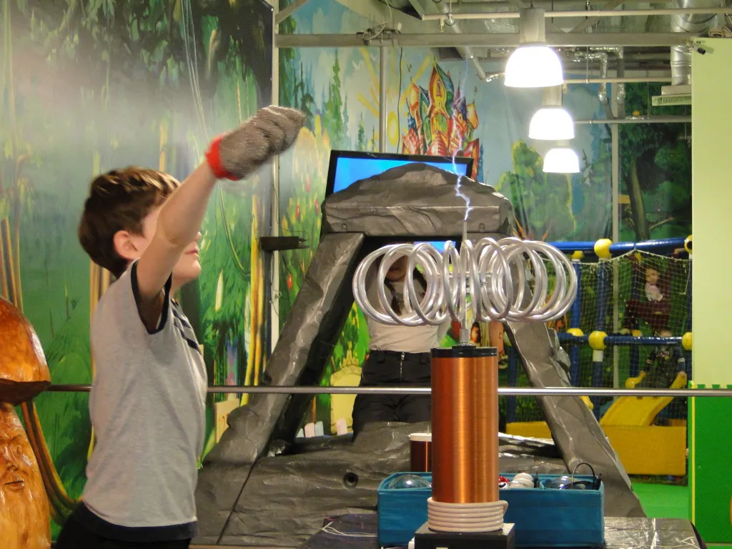 Дети постарше и взрослые ощутили себя в роли повелителей молний, поймав их с помощью металлической перчатки. А некоторые участники шоу осмелитесь потрогать молнию голыми руками.