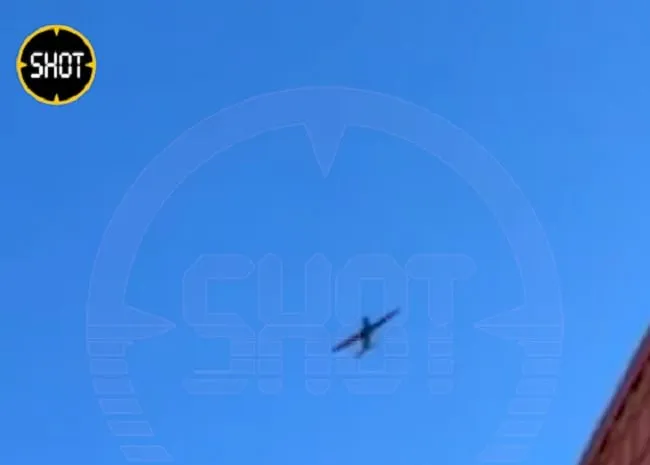 Один из роликов появилась в телеграм-канале Shot. Судя по кадрам, беспилотник самолетного типа пролетает над жилыми домами.