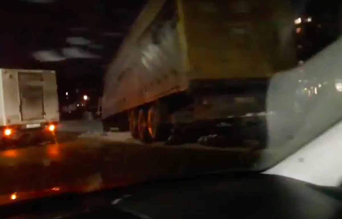 Один из грузовиков вылетел с дороги