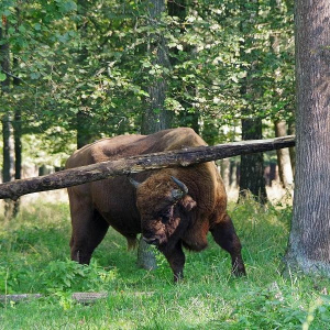 Рязанский зубр удивил жонглированием бревном Приокско-Террасный заповедник