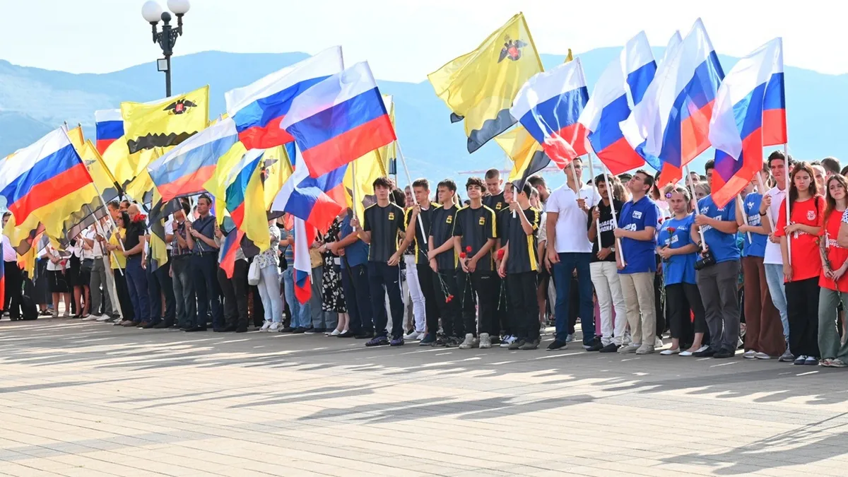 В рамках торжественных мероприятий состоялся подъем флага, торжественный марш новороссийского гарнизона и возложение цветов к памятнику основателям города-героя Новороссийска.