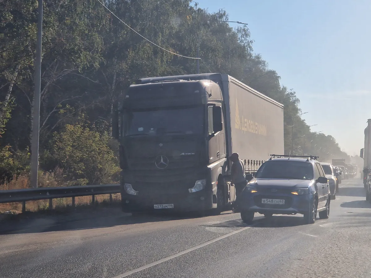 На окружной в Рязани возникла пробка из-за сломавшейся фуры