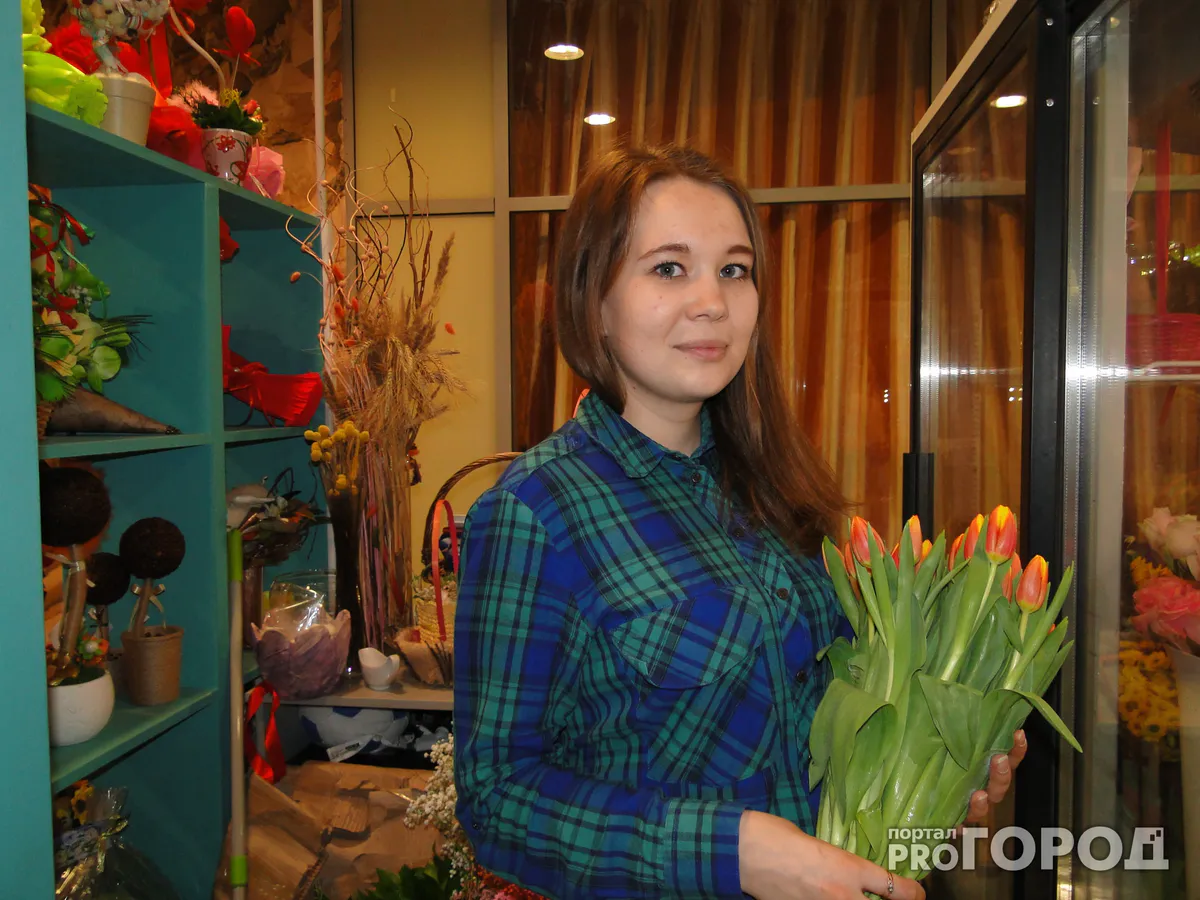 8 марта – это "звездный час" для цветочного бизнеса. В предверии праздника на ура идут не только живые цветы, но и искусственные композиции в корзинках, а также тематические сладкие букеты, которые вошли в последнее время в моду. За 12-ти часовой рабочий день, а работаю я с 10.00 до 22.00, успеваю обслужить порядка 50 клиентов. Это в трое больше, чем в обычные дни. Иногда даже нет времени на обед.