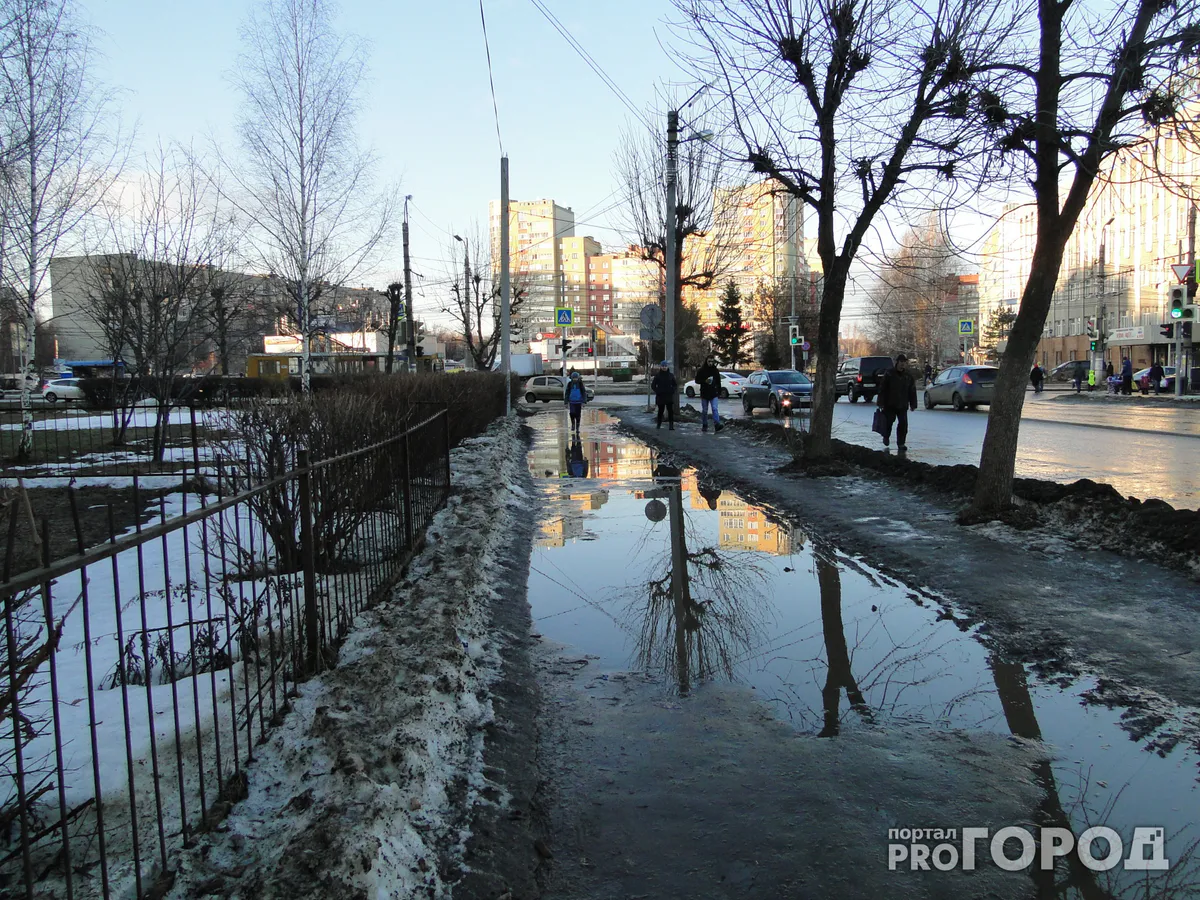 Весеннее наводнение на Костычева – обходя лужи и грязь на тротуаре, люди оказываются на проезжей части