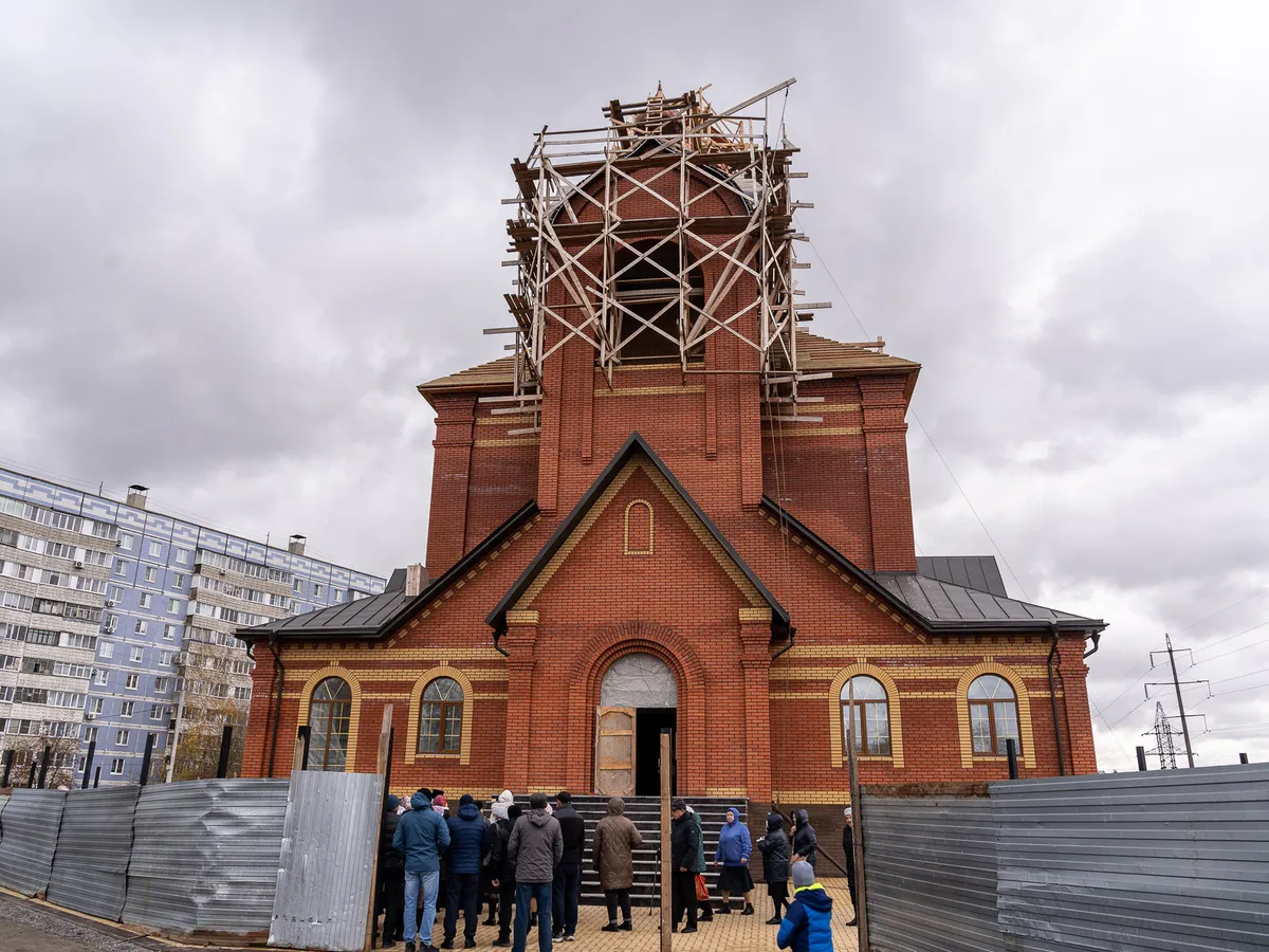 Стоит отметить, что ранее на этом месте уже находился храм, но его разрушили в прошлом веке. Однако в 2012 году был возведен временный Воскресенский храм, а пять лет назад рабочие приступили к возведению нового храма, который стал заметным символом микрорайона.