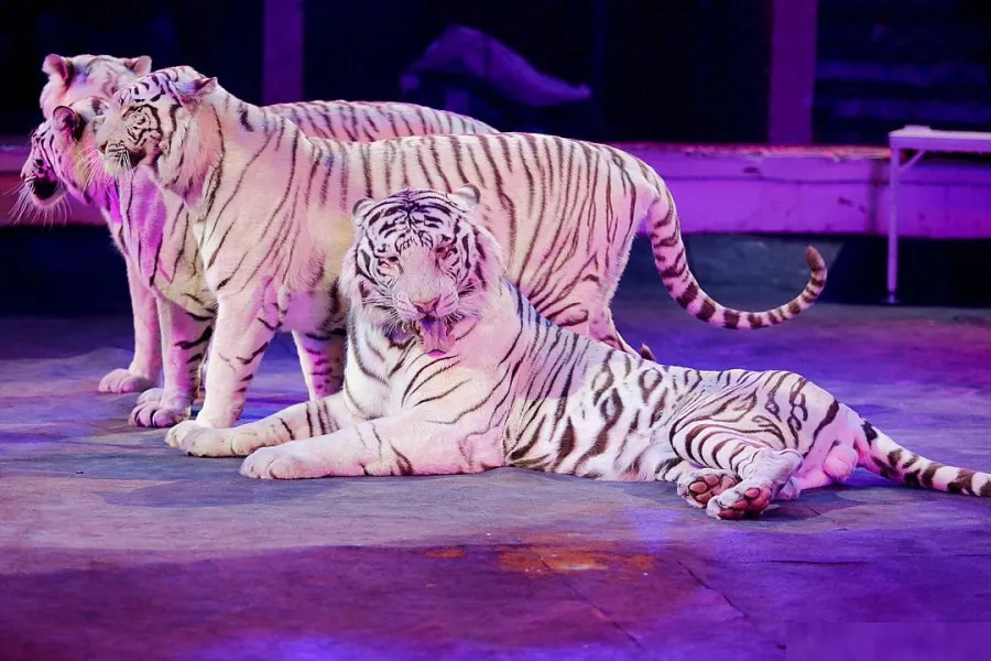 Герои второго отделения – уникальные белые тигры. Такие животные не встречаются в живой природе. В цирк «Максимус» они попали из питомников Южной Африки и Европы. Главный герой альбинос Аслан прибыл с Филиппин.