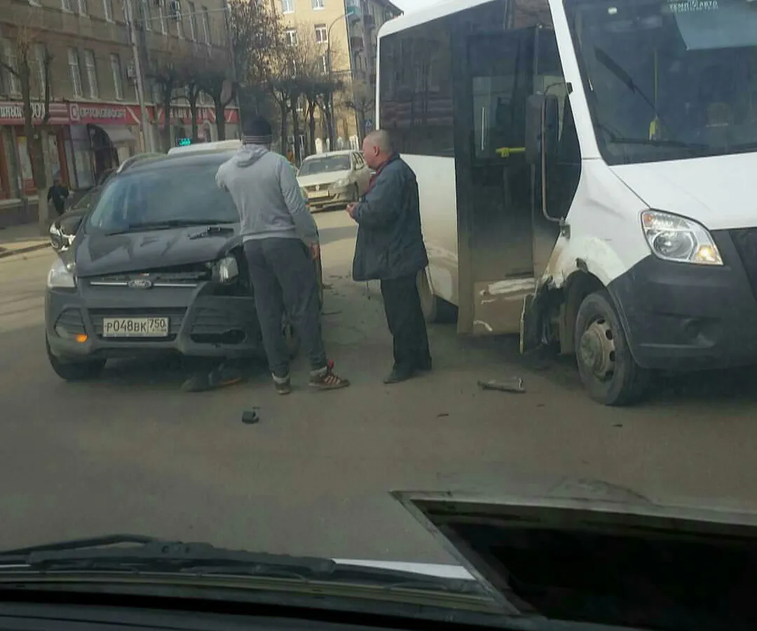 В группе ВКонтакте «Подслушано у водителей в Рязани» пользователь Роман Рязанов опубликовал фото ДТП  на улице Дзержинского, около городской клинической больницы скорой медицинской помощи. Столкнулись внедорожник Форд и маршрутное такси.