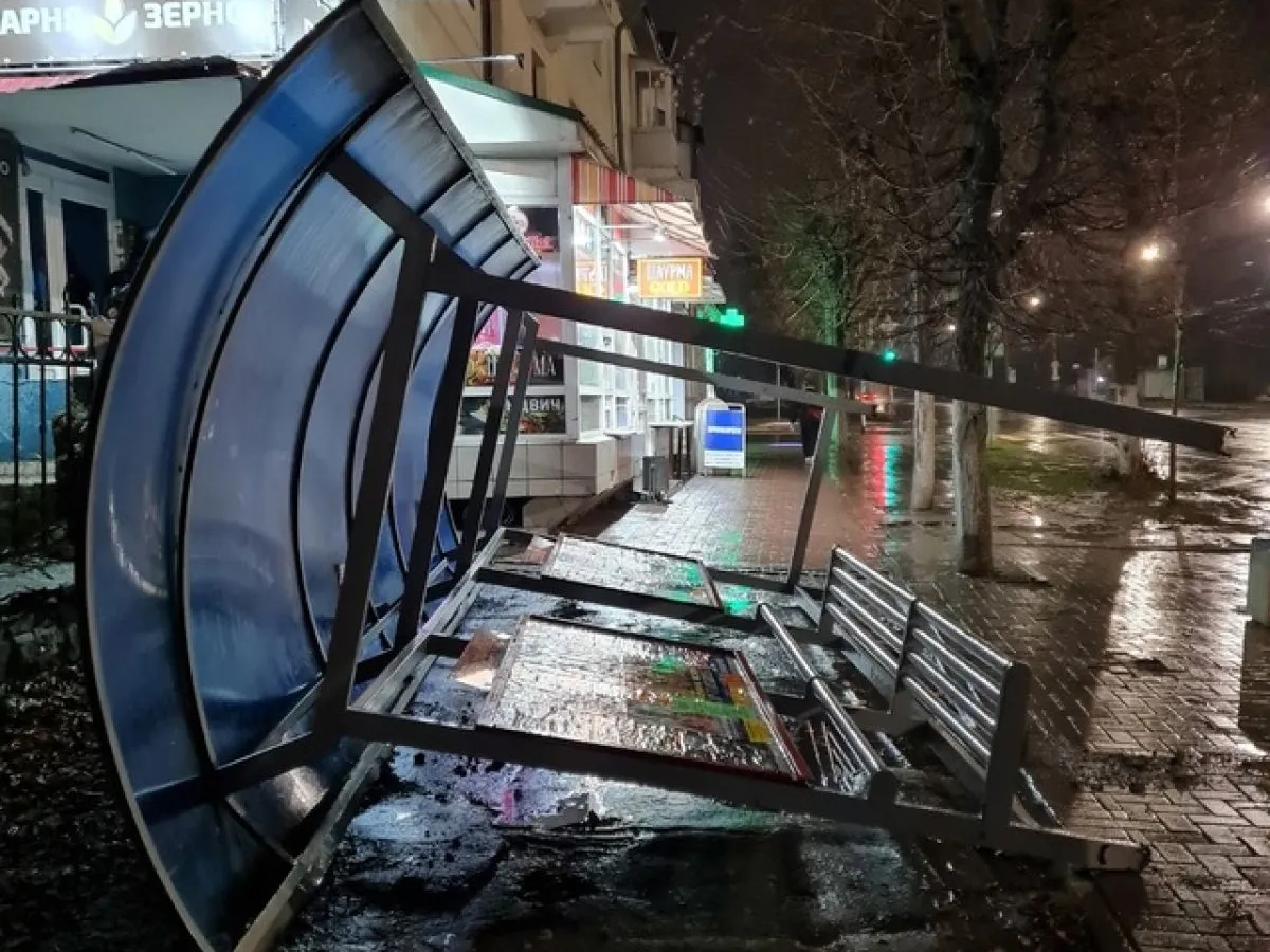 Строительные леса, установленные возле здания Министерства имущественных и земельных отношений на улице Свободы, не выдержали натиска стихии и обрушились. В микрорайоне Кальное сдуло веранду детского сада и обрушило часть фасада многоэтажного жилого дома.