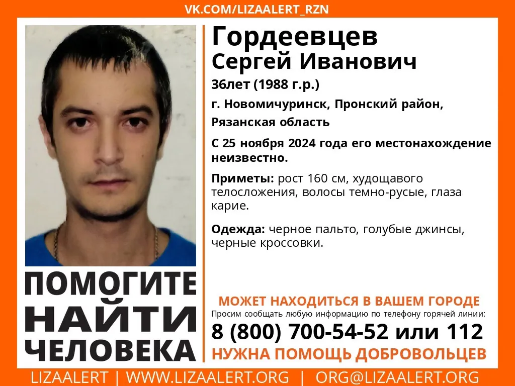 25 ноября в Новомичуринске Пронского района пропал без вести 36-летний Сергей Гордеевцев. До сих пор о его местонахождении ничего не известно.