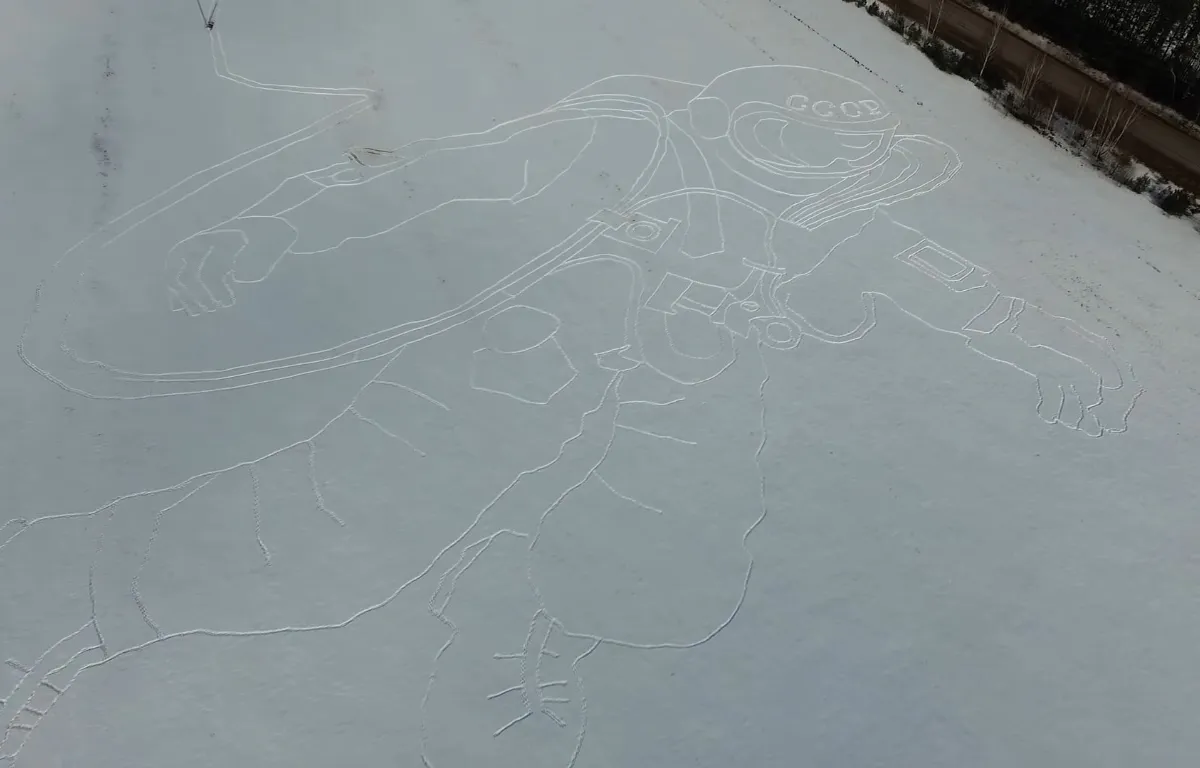 На заснеженном поле в Рязанской области появился портрет советского космонавта Алексея Леонова. Длина рисунка - около пять километров.