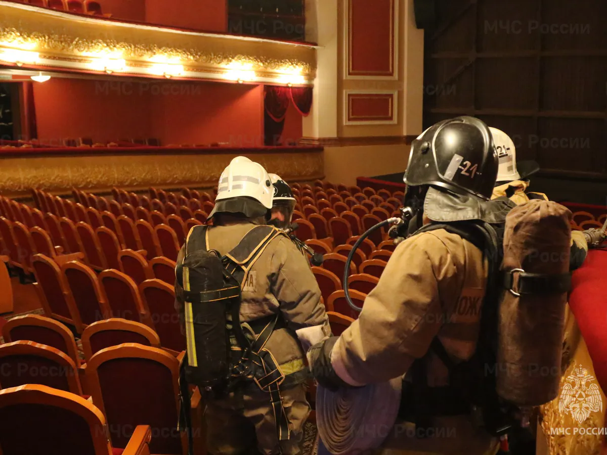 Сегодня сотрудники областного управления МЧС России провели пожарно-тактические учения в рязанском театре драмы. По легенде, на сцене начался условный пожар, людей эвакуировали, однако в здании остались четыре человека, которых нужно было спасти. Этим пожарные и занялись.