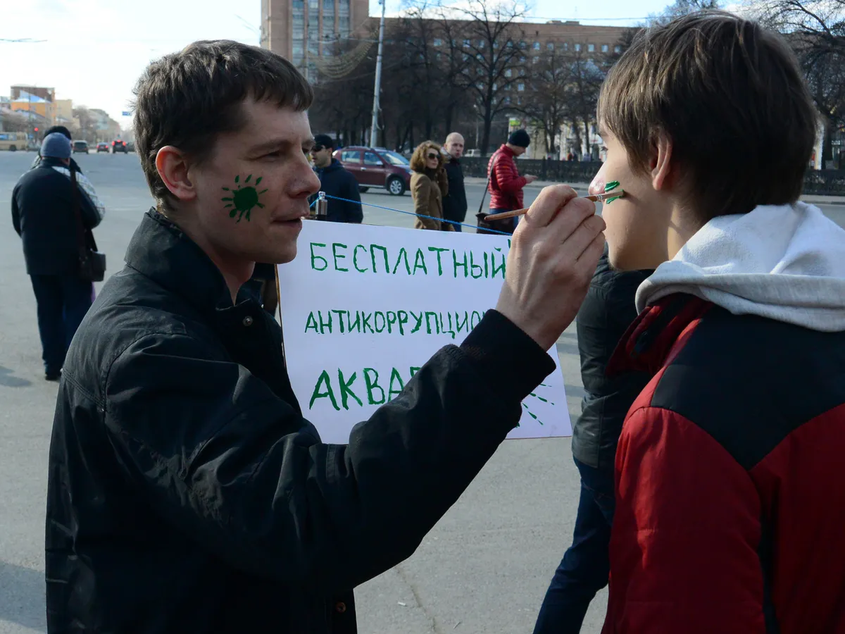 Примечательно, что краска цвета аптечной зеленки уже стала технологичным "мемом" и вовсю использовалась во время флэшмоба как символический атрибут. Многие участники обзавелись зелеными метками на лицах.