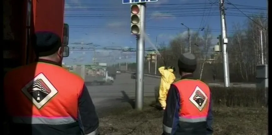 Чтобы очистить от слоя пыли светофор - опоры и короба с электрикой обдают водой из шланга, а затем протирают вручную.