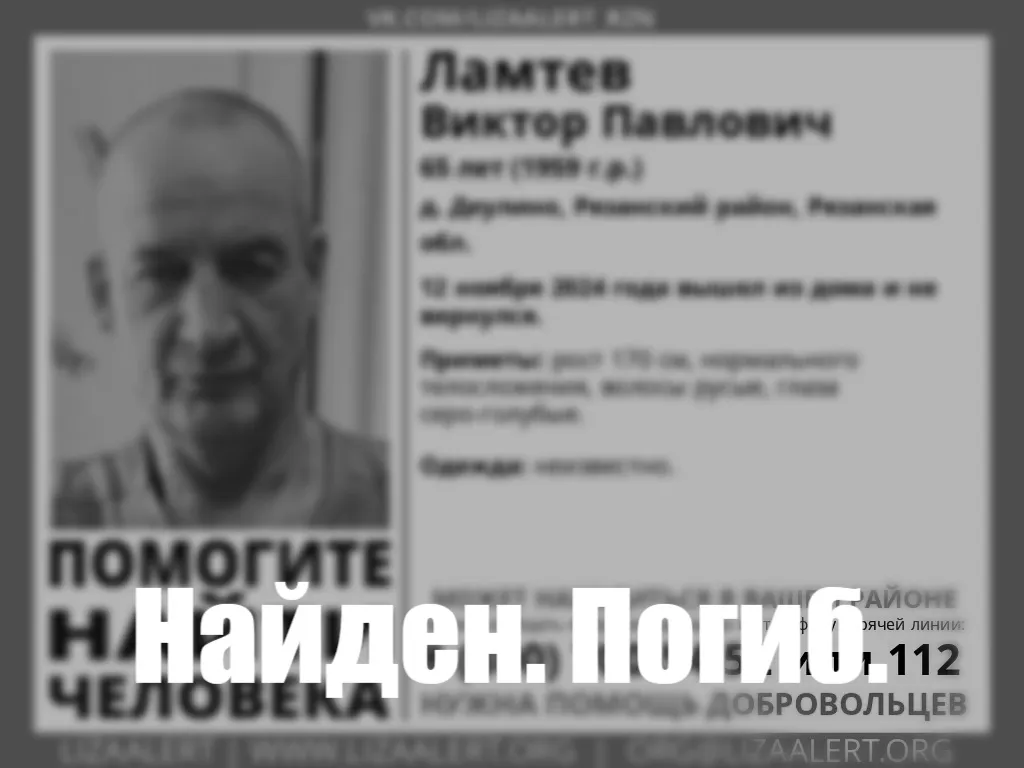 Напомним, 12 ноября прошлого года в Деулино Рязанского района пропал без вести 65-летний Виктор Ламтев. Мужчина вышел из дома, но назад так и не вернулся.