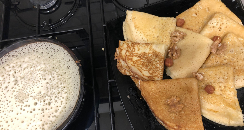 Вливаю это в тесто перед мукой: блины получаются кружевными и тонкими — невероятно вкусные