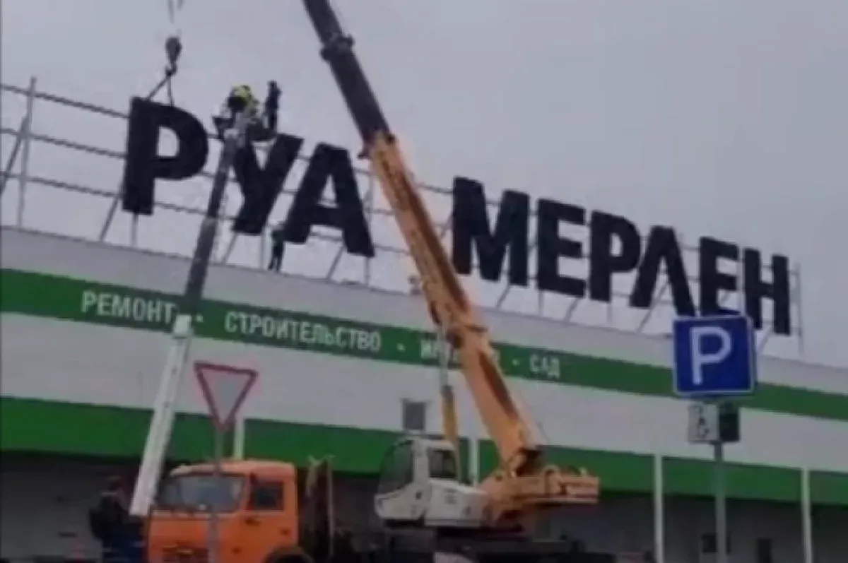В Рязани местный житель запечатлел демонтаж части названия «Леруа Мерлен» со здания одноименного гипермаркета. Соответствующие кадры горожане опубликовали в социальных сетях.
