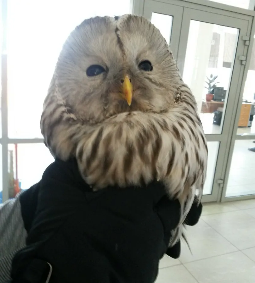 Рязанец отнес птицу в офис. Попытки накормить ее не имели успеха - сова ела неохотно. После этого ее решили показать специалистам.