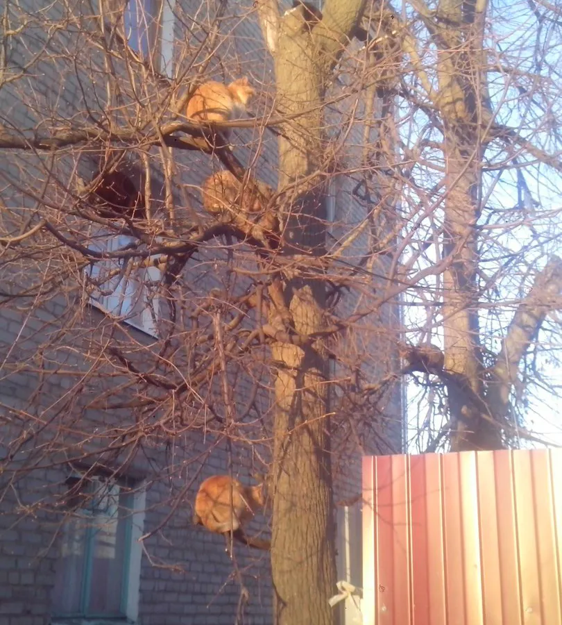 Рязанка сделала интересный снимок. Девушка обнаружила, что дерево возле дома усыпано котами. Свою фотографию она выложила в социальную сеть.