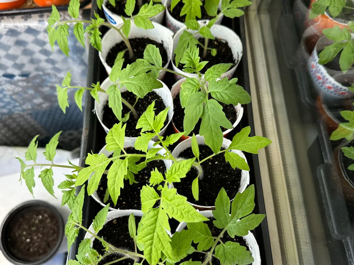 Томаты неприхотливы: сойдут и общие ящики, и отдельные стаканчики. Секрет — в почве. Смешайте торф с перегноем (2:1), добавьте песка и золы. Запах должен напоминать лес после дождя. Если рассада всё же вытянулась, виноваты жара или темнота. Понизьте температуру до +18°C или добавьте фитолампу — без неё на северном окне темно, как в подвале.
