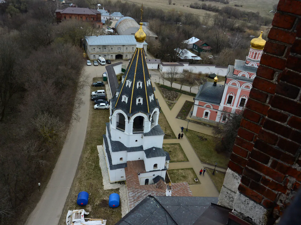 Во-первых с колокольни открывается поразительный вид на живописные окресности монастыря и пойму Оки. Вдалеке, за рекой, можно разглядеть даже светлые постройки Солотченского женского монастыря. Ну и во-вторых, каждый кто поднялся на эту высоту, мог попробовать себя в качестве звонаря и грянуть в большой колокол.