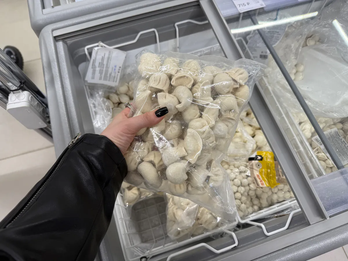 Слипшиеся пельмени — их размораживали и замораживали снова.