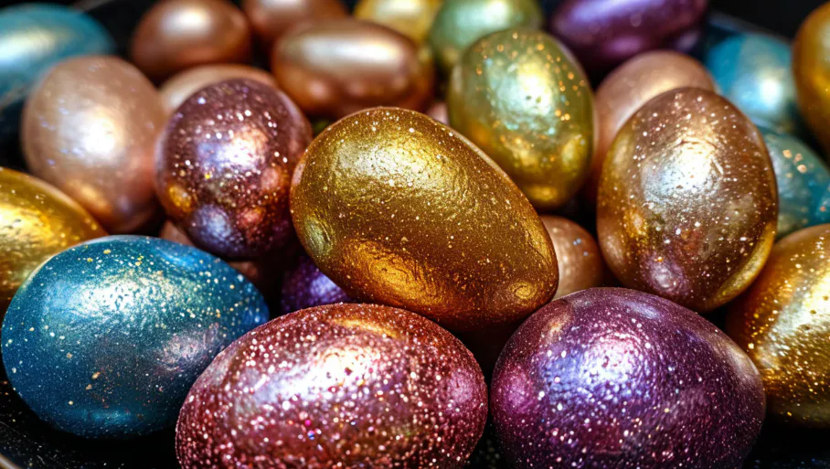 Вот ещё одна идея для Пасхи — яйца с блеском. Не просто цветные, а будто покрытые космической пылью. Смотрятся круто, делаются просто.