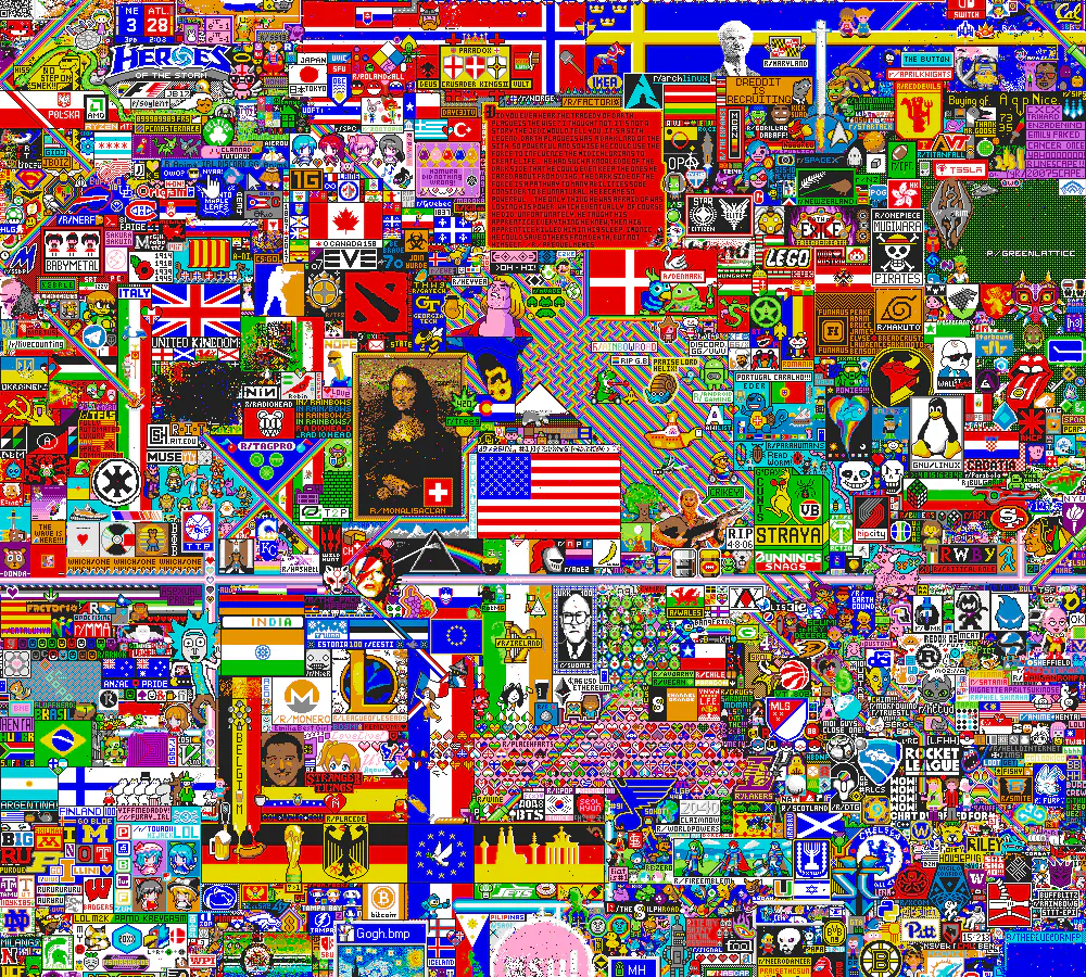 Cоциальный новостной сайт Reddit провел Место — это интерактивное графическое полотно размером 1000 на 1000 пикселей. Предполагалось, что участники сообщества совместно разрисуют это полотно, как им понравится. Но в результате это переросло в философскую, географическую, и даже политическую битву. Обычное упражнение в рисовании превратилось в захватывающий социальный эксперимент.