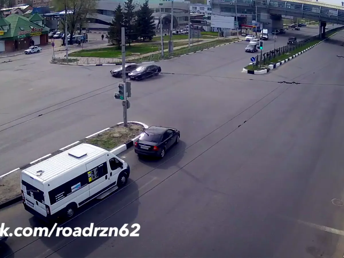 В понедельник, 1 мая, на пересечении Московского шоссе и улицы Мервинской столкнулись два автомобиля. Видео аварии размещено на канале на Youtube Дороги Рязани.