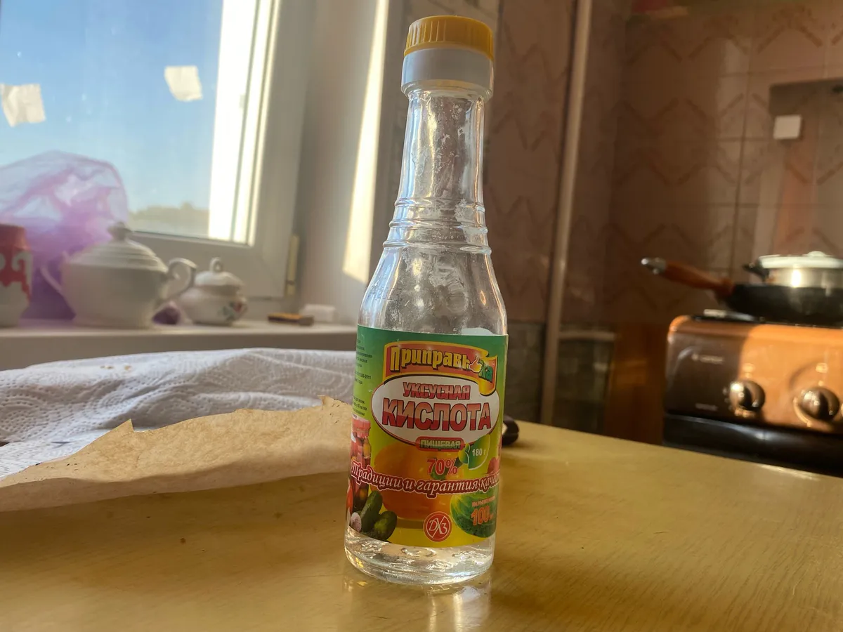 Сначала уксус надо немного нагреть. Примерно до 40-50 градусов — не перегревайте, главное, чтобы был теплый.